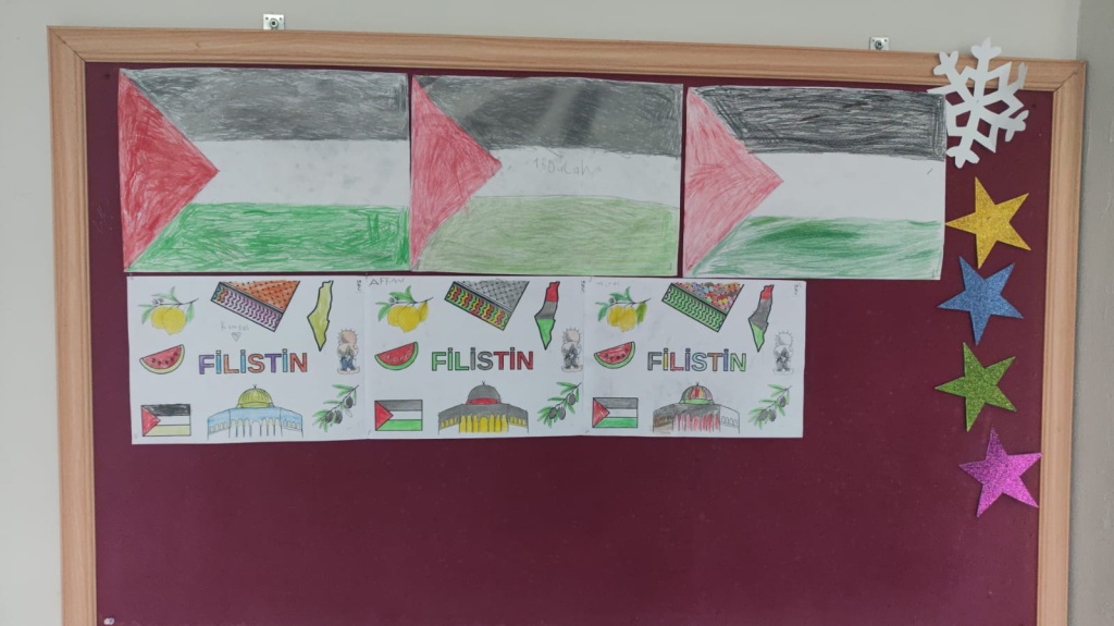 Okulumuzda “Filistin Farkındalık Etkinlikleri” düzenlendi. 2/B sınıfı öğretmeni Ahmet Rıfat Sevgi, 2/C sınıfı öğretmeni Serdar Tan ve 4/A sınıfı öğretmeni Servet Doğan rehberliğinde gerçekleştirilen etkinliklerde öğrenciler, savaşın değil barışın renklerini boyalarla ifade ettiler. Boyama etkinliklerinde öğrenciler, özgürlük, kardeşlik ve umut temalarını kendi bakış açılarıyla resmettiler. Çocukların çizgilerinde sınırları aşan bir insanlık duygusu, acılara karşı duyarlılık ve barışa dair güçlü bir inanç yer aldı. Etkinliğin bir diğer bölümü ise öğrencilerle yapılan röportajlardan oluştu. Öğrenciler, kendi yaşlarına rağmen savaşın insan hayatındaki etkilerini anlamaya ve empatiyle yaklaşmaya çalıştılar. “Tüm çocuklar mutlu yaşasın,” “Kimse üzülmesin,” gibi ifadeler, küçük kalplerin büyük bir vicdan taşıdığını gösterdi. Bu anlamlı etkinlikler, çocuklara sadece bir ülkenin yaşadığı zorlukları değil, aynı zamanda insan olmanın ortak sorumluluğunu da hatırlattı. Okulumuz, insan haklarına ve evrensel değerlere duyarlı bireyler yetiştirme yolunda bir adım daha atmış oldu.